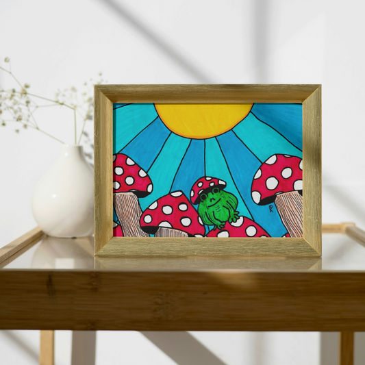 Pride Frog with Mushroom Hat | Handmade Original Art Waterproof Vinyl Sticker