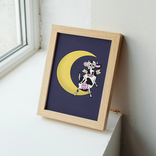 Moon Cow Sticker | Handmade Original Art Waterproof Vinyl Sticker