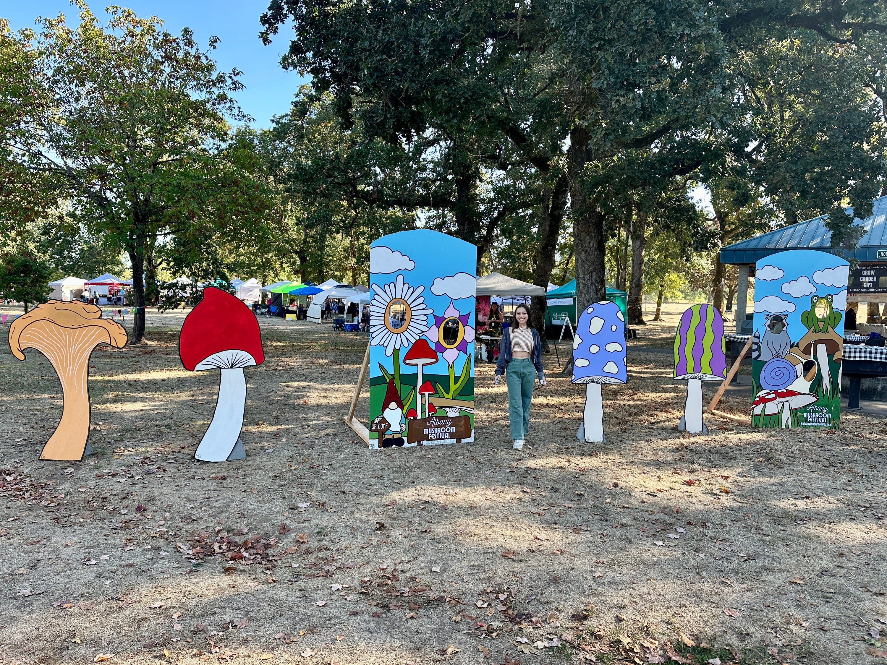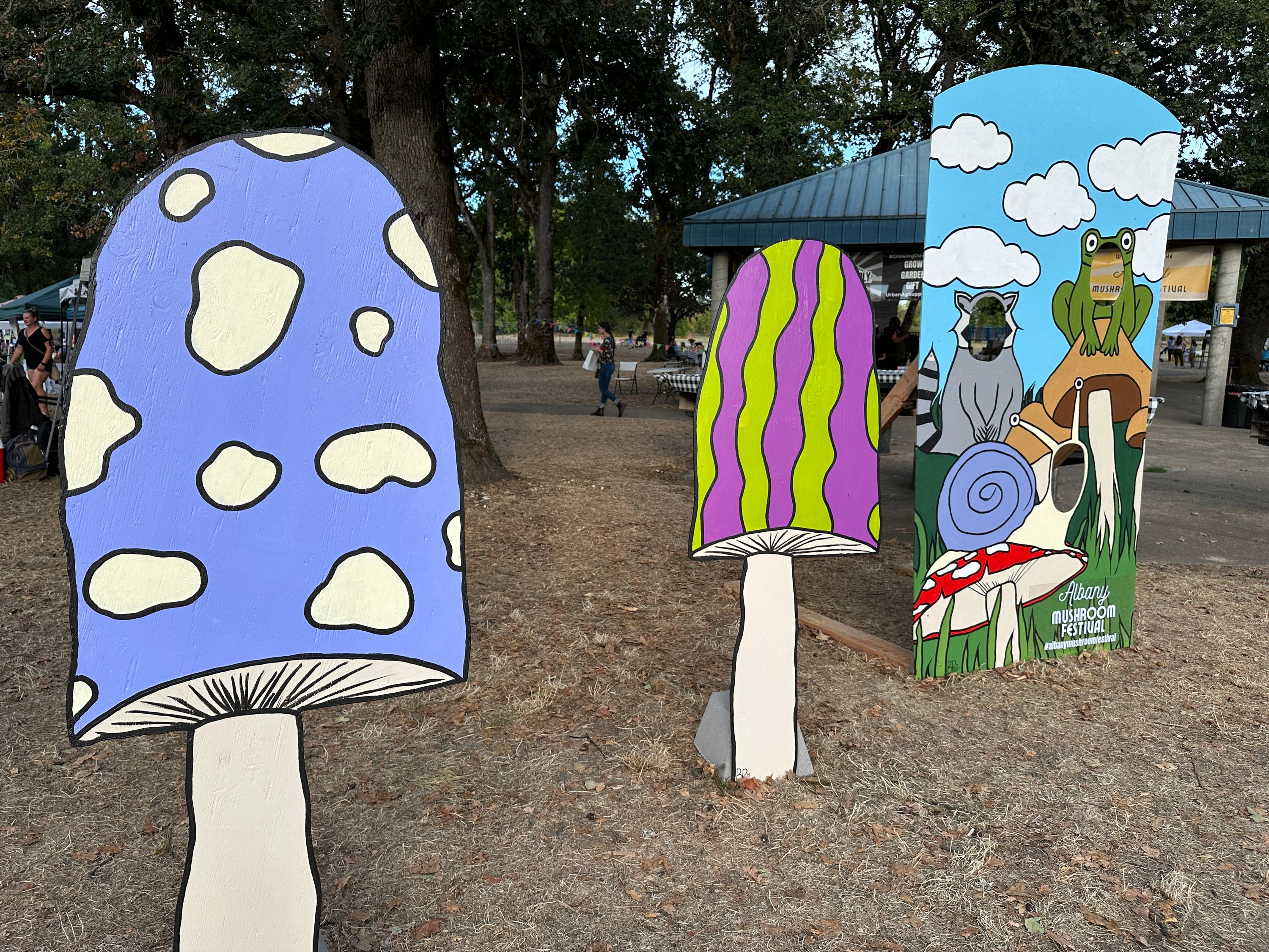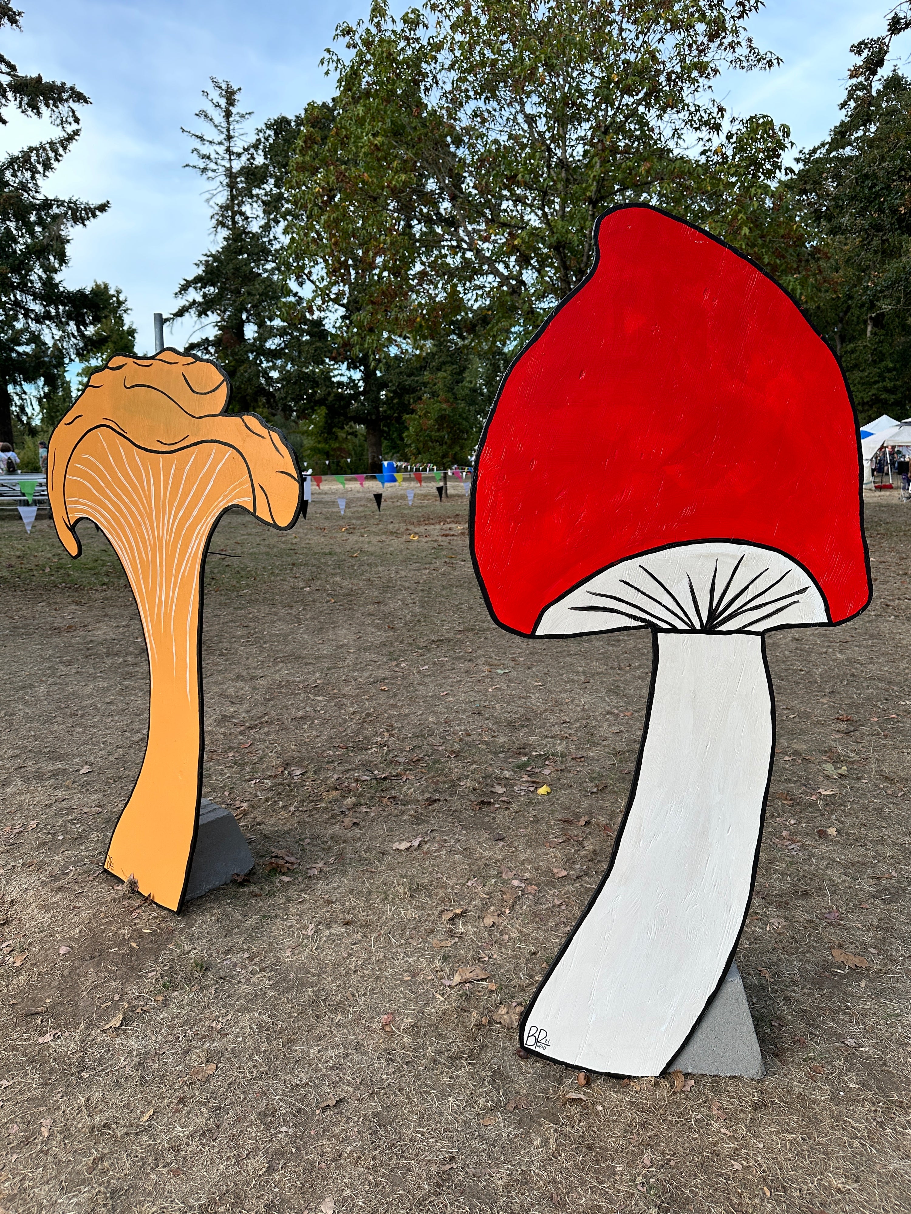 As the Art Director for the first annual Albany Mushroom Festival in Oregon, I was asked to think of some interactive art pieces for the festival. The vision was: mushroom, animals, family-friendly, photo ops.