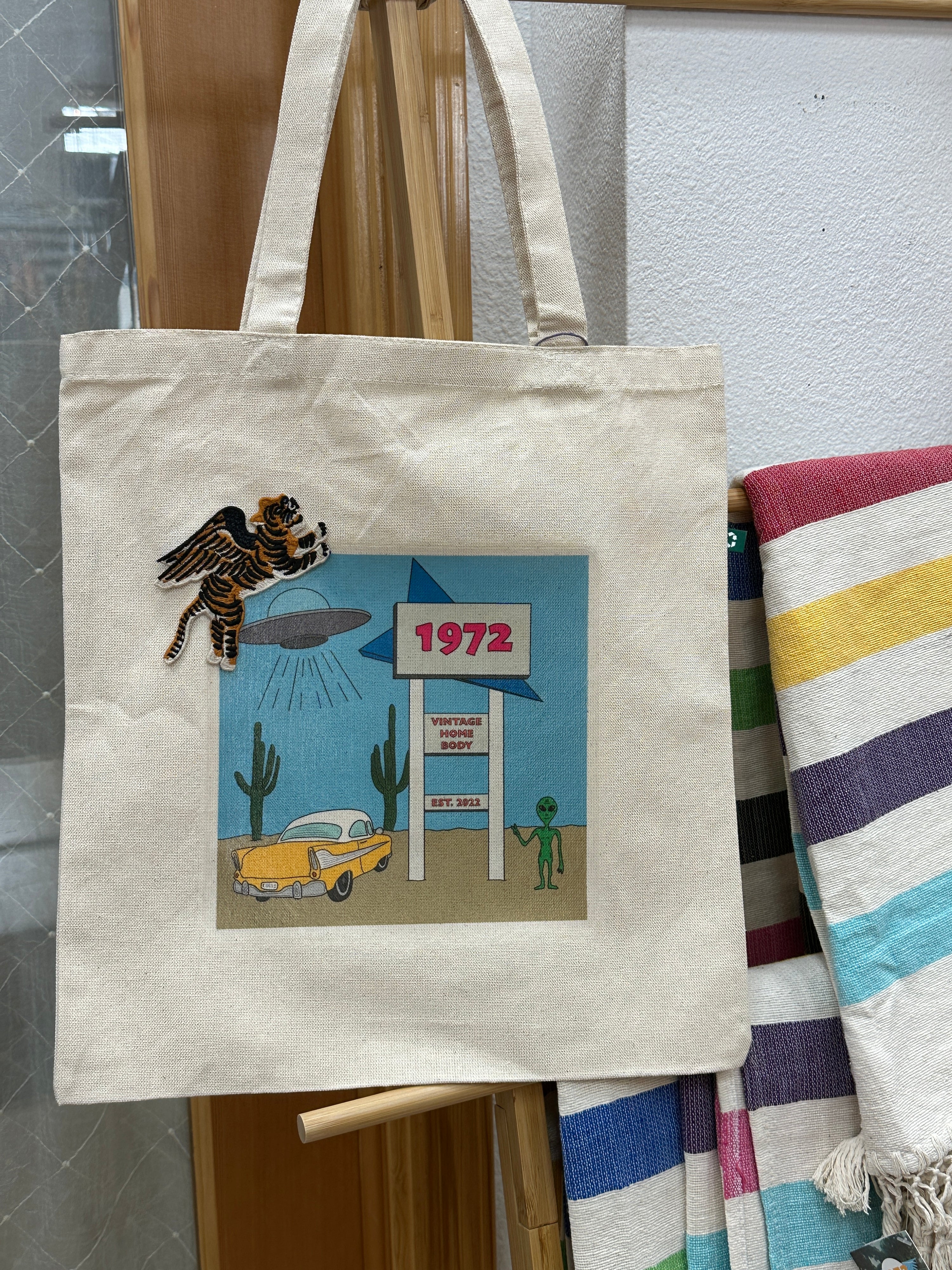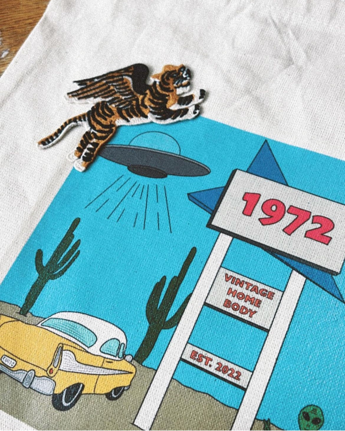 1972 Vintage Co. is a vintage home and body shop in Corvallis selling a variety of secondhand items and an assortment of products from artists and other small businesses. I visited often when I had my own storefront in Downtown Corvallis. After a conversation with the owner and exchanging ideas and reference photos, the limited edition 1972 tote bag was brought to life.