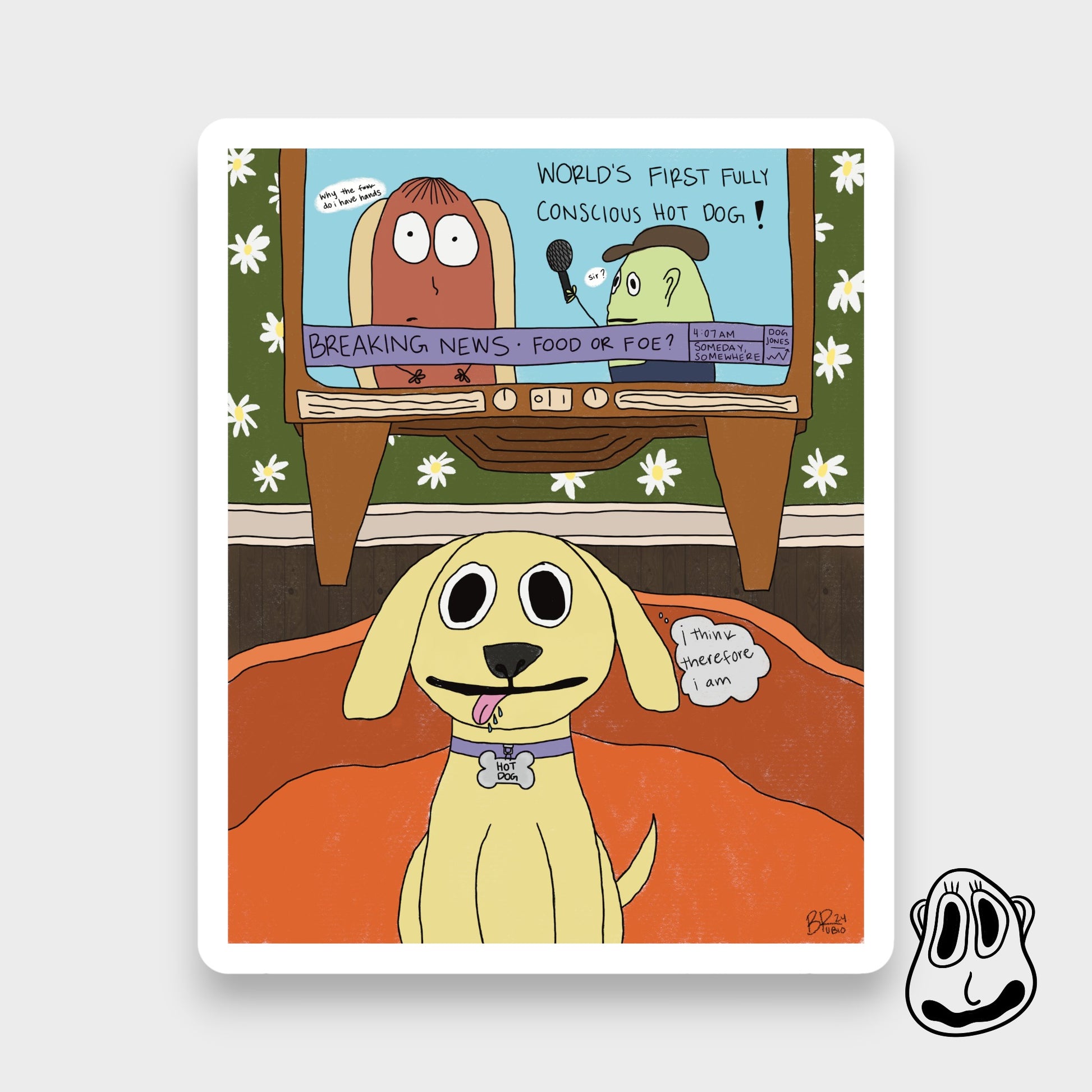 Hot Dog, I’m Conscious! Sticker | Handmade Original Art Waterproof Vinyl Sticker