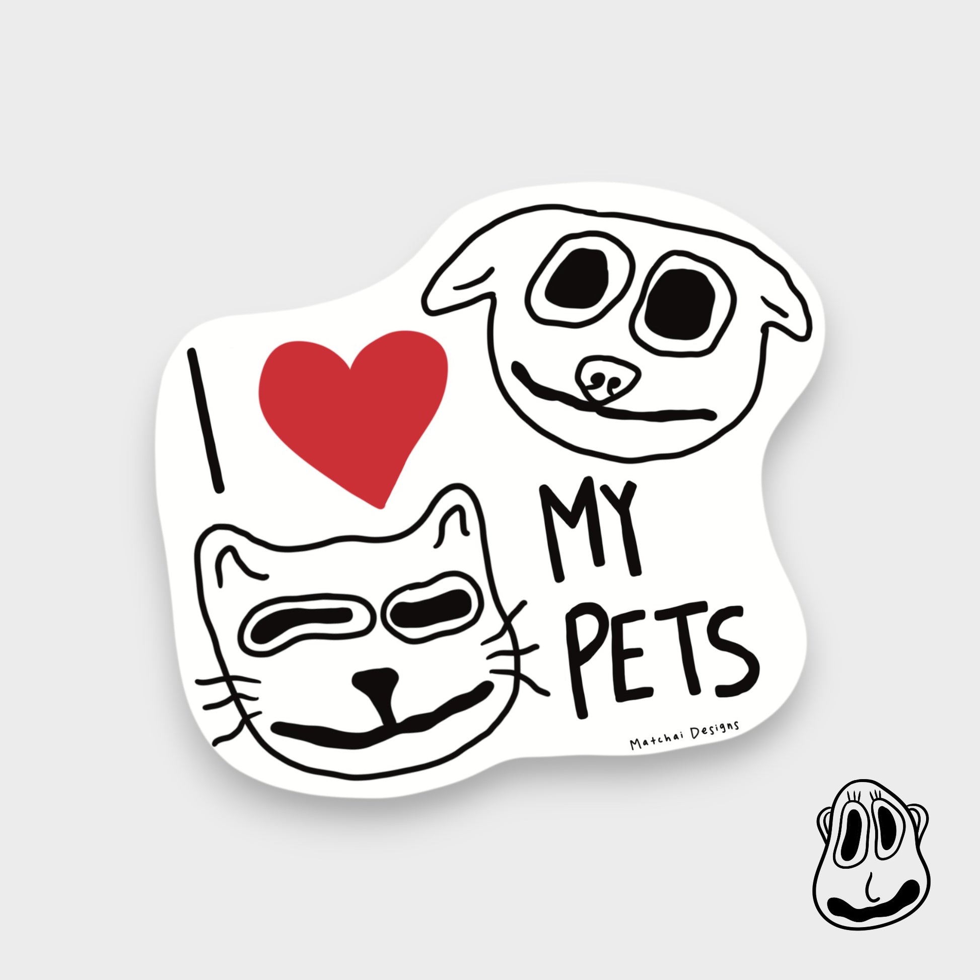 I Heart My Pets Sticker | Handmade Original Art Waterproof Vinyl Sticker