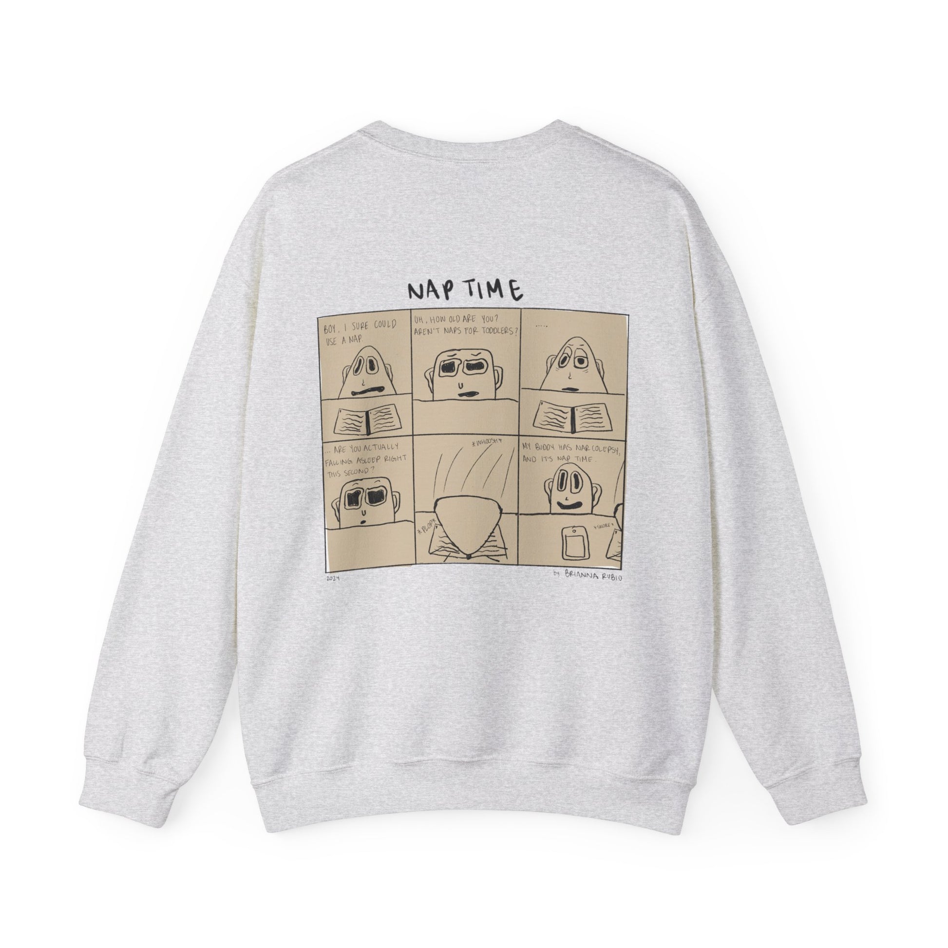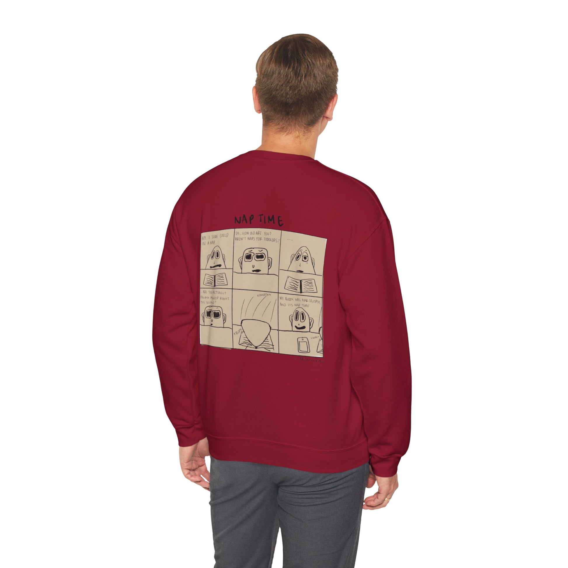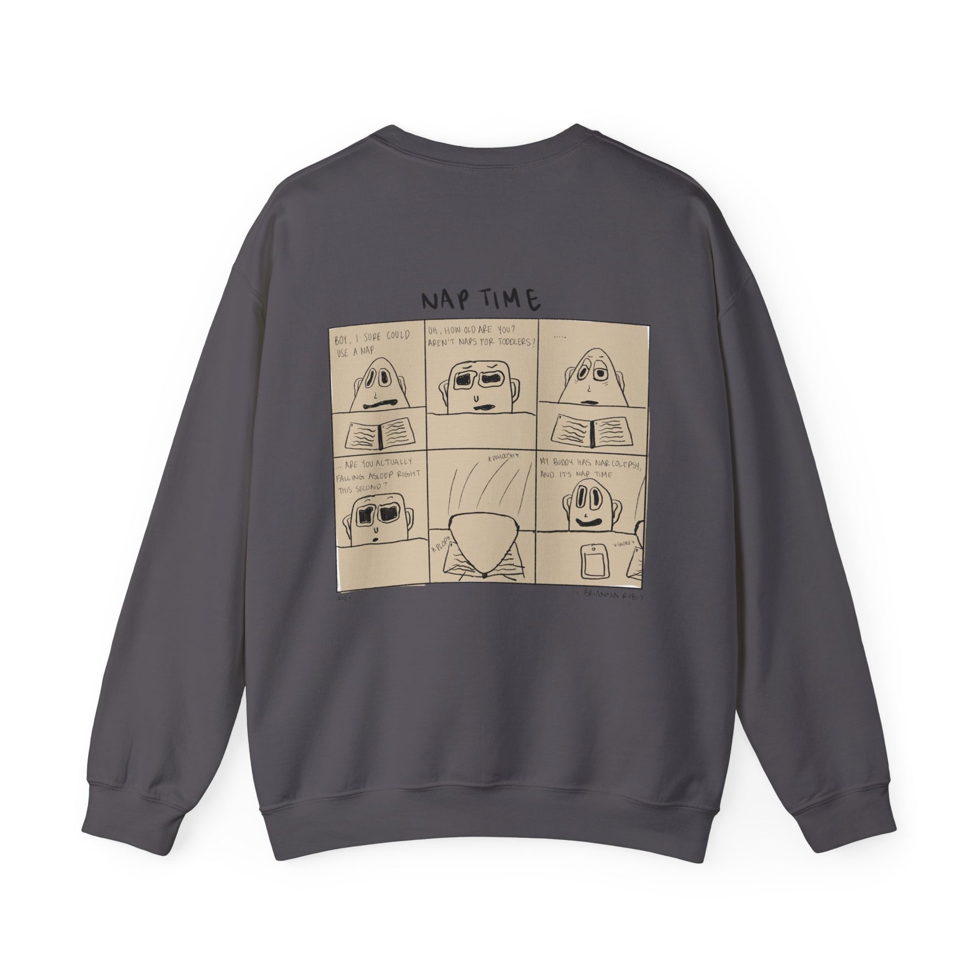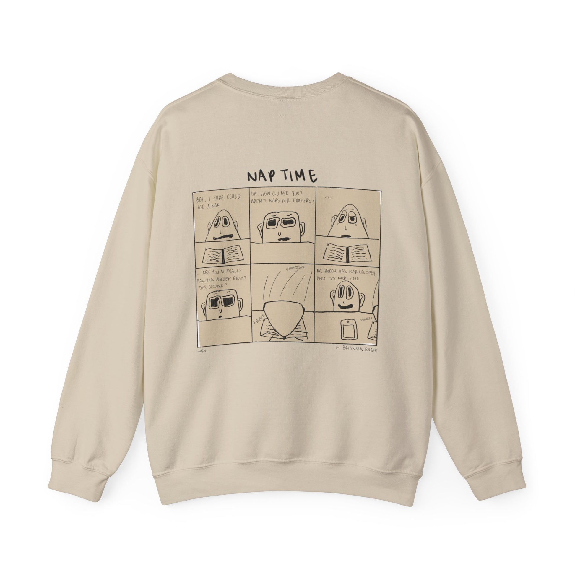 "Nap Time", and original comic by me. This crewneck is part of my narcolepsy awareness collection to share my experience as a person living with narcolepsy. Narcolepsy is a neurological condition that impairs the brain's ability to regulate the sleep-wake cycle.