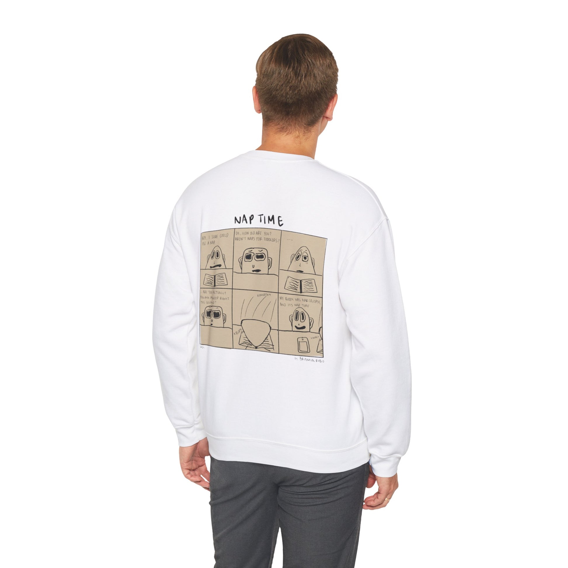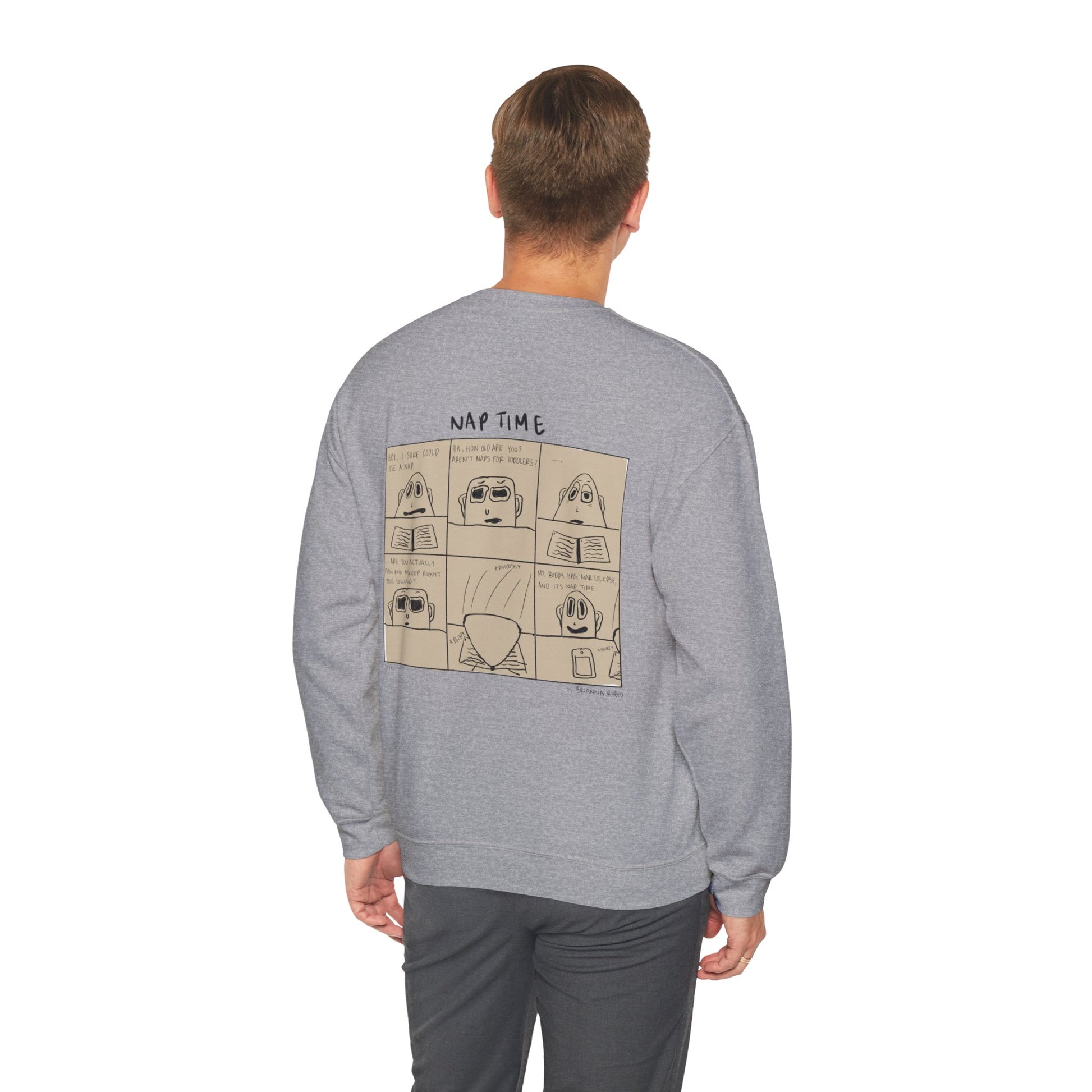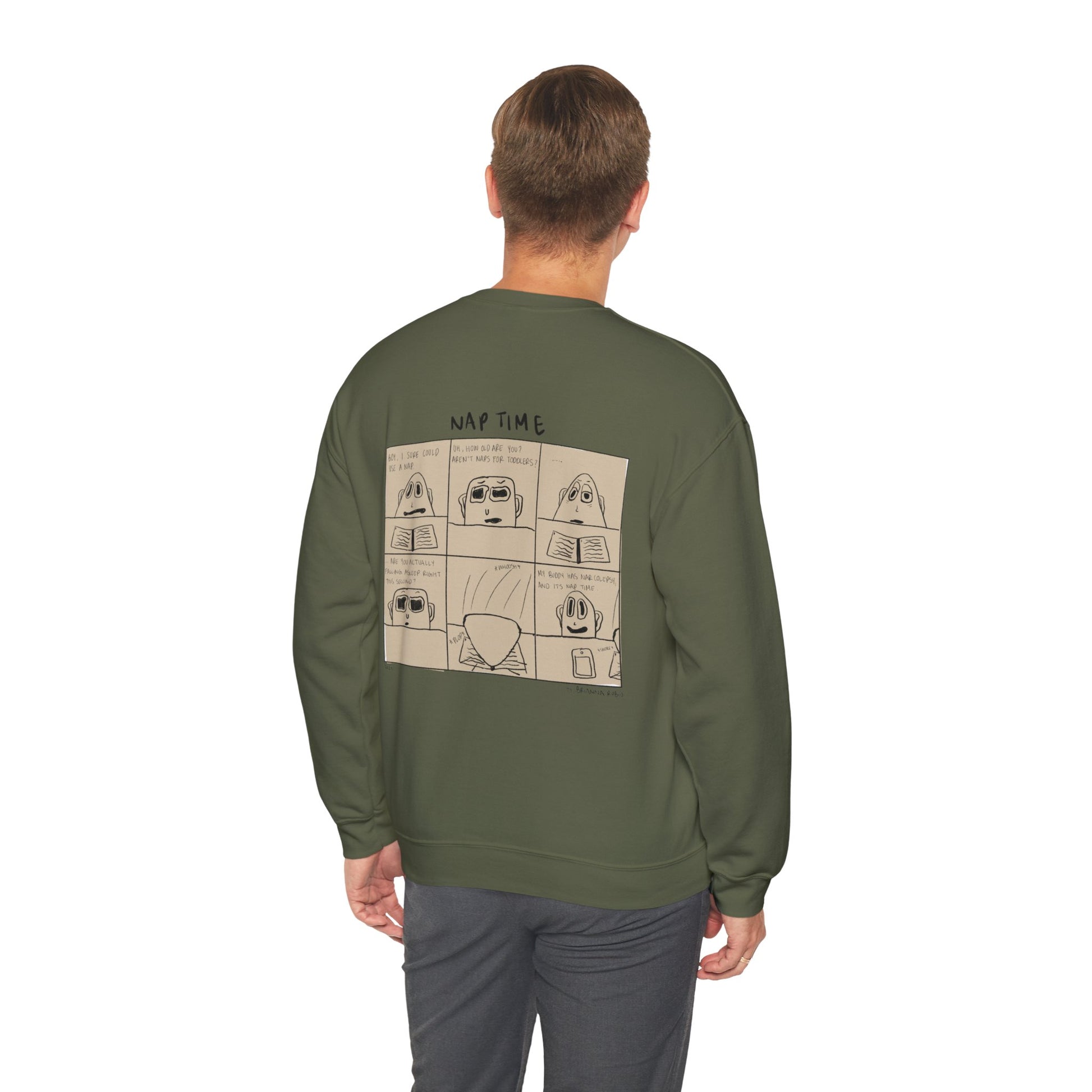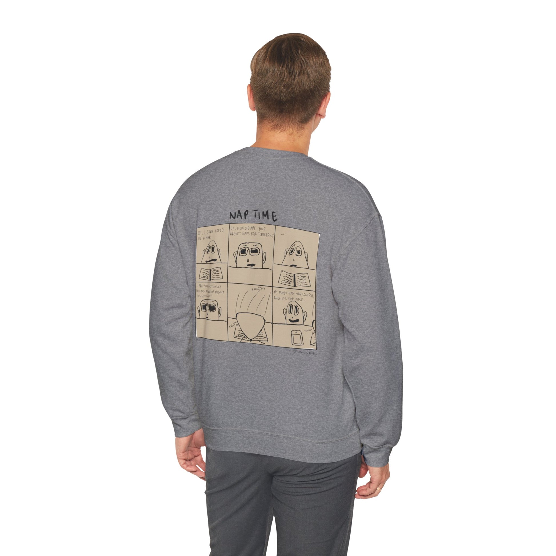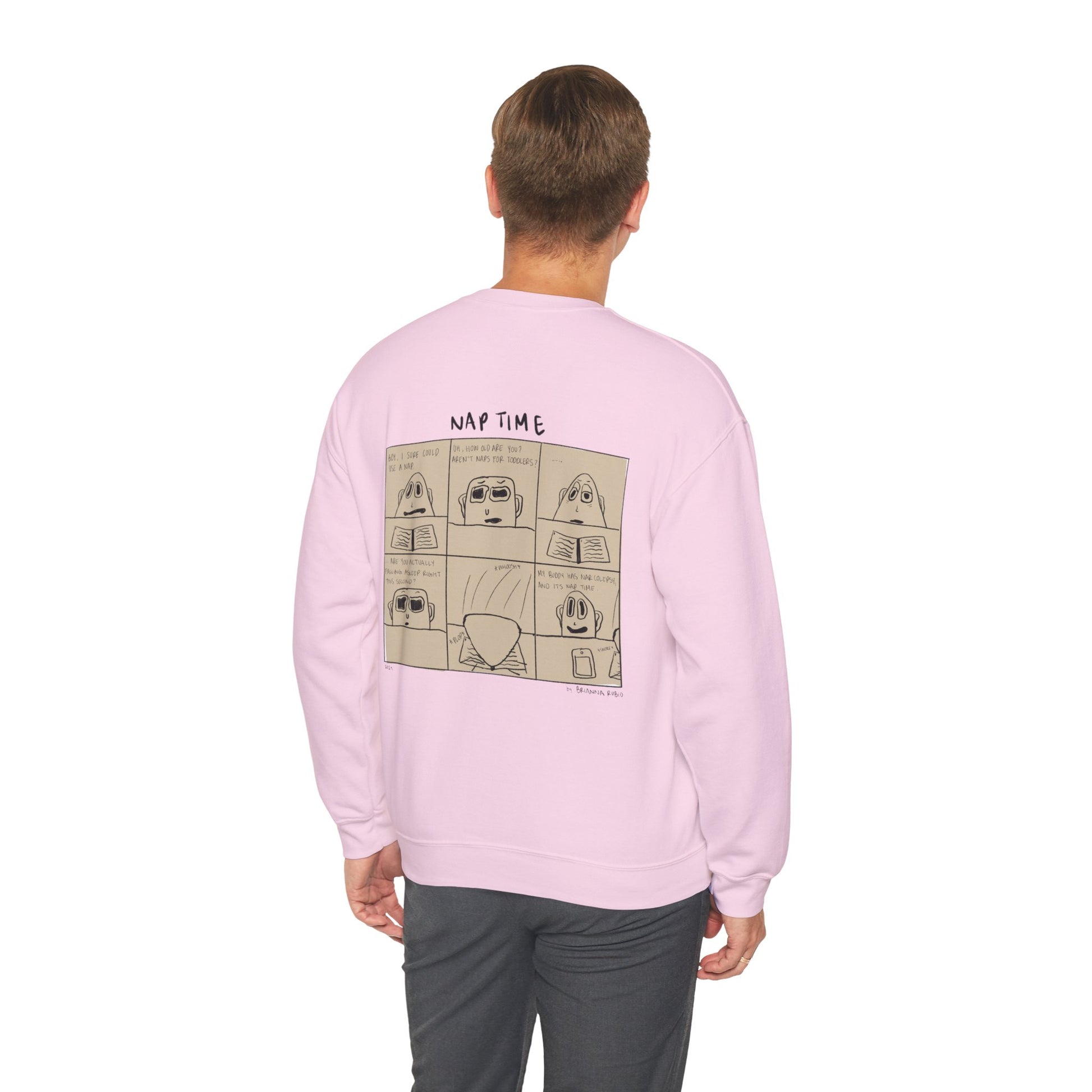 "Nap Time", and original comic by me. This crewneck is part of my narcolepsy awareness collection to share my experience as a person living with narcolepsy. Narcolepsy is a neurological condition that impairs the brain's ability to regulate the sleep-wake cycle.